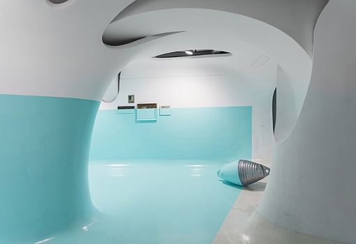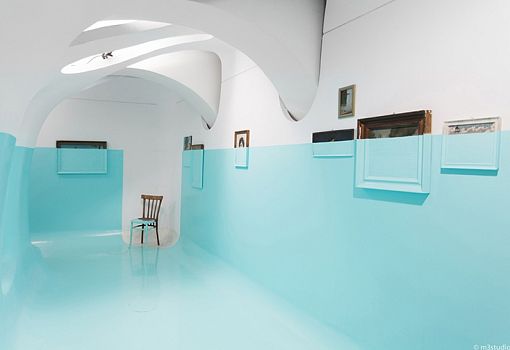 Лондонский художник Давид д’Элиа превратил художественную галерею в инсталляцию при помощи одного провокационного приема. Он покрыл стены, колонны и все объекты в зале галереи до половины специальной синей краской, используемой в кораблестроении для того, чтобы уничтожать и задерживать рост микроорганизмов. Интерьер неуловимо стал напоминать корпус судна (вид снаружи). «Ватерлиния» д’Элиа безжалостно прошла прямо по полотнам, внеся интригу в их сюжеты. Таким оригинальным способом автор попытался создать сюрреалистическое внутреннее пространство, погруженное в бездну безвременья. Все 19 полотен, использованных в инсталляции, были найдены в подвалах старых зданий Рима, либо куплены на блошиных рынках и в антикварных магазинах.