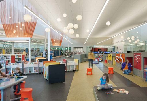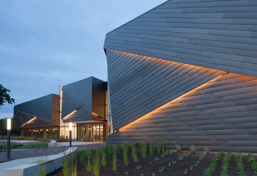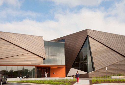 Новая библиотека Луисвилля (США) была создана с использованием специально разработанных фасадных модулей. В результате общественный центр приобрел фасады с экранированием, напоминающим чешую. Фирма MSR использовала стекло, сталь и камень для своего проекта, при этом экраны стилизованы под кирпичную кладку. Особую динамику сооружение приобретает в темное время суток, после включения интегрированной подсветки. Предполагается, что проект станет прототипом для еще двух аналогичных сооружений.