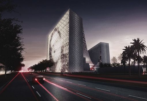 Еще один проект офиса медиакомпании представила фирма BIG. Речь идет о крупном ближневосточном медиаконцерне. В основе композиции две кубические башни общей площадью 650 000 кв. м, соединенные гигантским навесом. Он символизирует социальную связь между СМИ и обществом. Разработчики также предусмотрели общее пространство для взаимодействия: столовая, фитнес-центр, банк и зрительный зал. Террасы на крыше могут быть использованы сотрудниками, работающими в разных подразделениях компании. Будут здесь и более закрытые помещения с повышенным уровнем конфиденциальности.