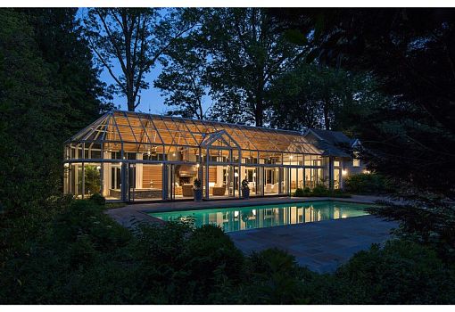 Больше всего дом Glass Pleasure Dome похож на заключенное в стекло общественное пространство, открытое любопытствующим взглядам. Стеклянная структура получилась в результате реконструкции павильона с бассейном. Проект осуществило бюро Barnes Vanze Architects. Практически полностью прозрачное сооружение стало всепогодным и всесезонным местом для отдыха для семейства. В темное время суток объект становится украшением внутреннего двора благодаря игре света, льющегося сквозь стеклянный фасад. Расположено строение в Мэриленде (США).