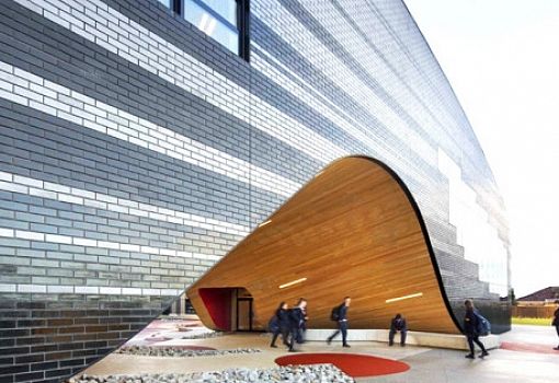 Здание школы в Мельбурне (Австралия) – одно из самых необычных на Зеленом континенте. По замыслу архитекторов из бюро McBride Charles Ryan, комплекс школы представляет собой два криволинейных замкнутых объема с зелеными зонами в центре каждого. С территорией улицы школьные дворы связаны при помощи нескольких подрезов в нижней части постройки. Внутренние поверхности этих вырезов отделаны деревом, а сам комплекс – глазурованным кирпичом. Критики отмечают тот факт, что авторы проекта использовали в своей работе некоторые принципы аэродинамики.