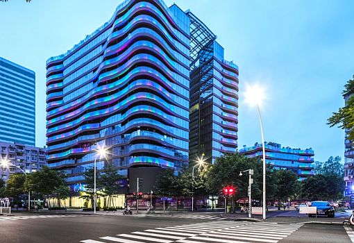 Радужный фасад и ритмическая иллюминация «Шуси» делает его ярким акцентом всего района, и вносит разнообразие в большое количество однотипных квартир, балконов и наружных пространств, формируясь вокруг здания и создавая ощущение неповторимости.