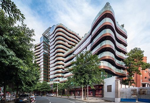 Голландская архитектурная фирма NEXT реализовала проект жилого комплекса «Шуси», расположенного в старом центре города Фучжоу (Китай). Участок, отведенный под строительство, имел довольно непростые характеристики, что и привело к U-образному плану здания, в котором разместилось 400 квартир площадью от 45 до 110 кв. метров.