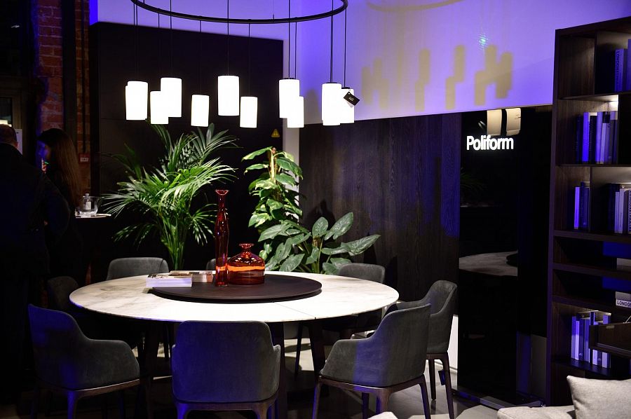В этот день в пространстве дизайна царила творческая атмосфера, созданная талантом Жан-Мари Массо. Великий мэтр дизайна, которому Poliform обязан последними громкими новинками и бестселлерами, целиком преобразил интерьер, наполнив его цветом, функциональными и стилистическими находками.