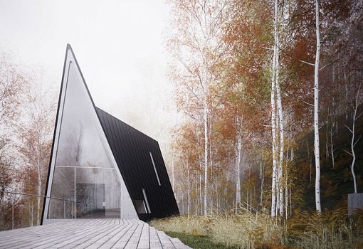 Современная версия уединенной хижины была создана архитектором Уильямом О'Брайеном в горах Калифорнии (США). Концепция предлагает органично вписанный в естественную среду островок цивилизации в минималистском стиле. Четкие линии и открытость здания контрастируют с окружающим ландшафтом, делая акцент на архитектуре и ее взаимодействии с природой.