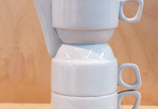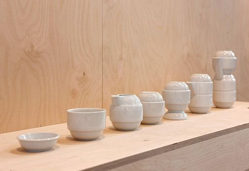 Все предметы фарфорового сервиза Еленой Герговой (Elena Gergová)  «В начале была чашка» строятся на основе одной базовой формы обычной чашки. Это значительно упрощает производственный процесс и снижает стоимость изделия.