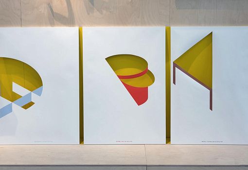 Графическая работа Yellow  Матея Чинчеры (Matĕj Činčera) посвящена трем историческим моделям авторства Джо Понти, Карло Моллино и Пола Рудольфа. На переднем плане  мы видим три белых «постера», на которых изображены столы с вырезанными столешницами, а проглядывающий желтый задний план придает работе эффектную объемность.