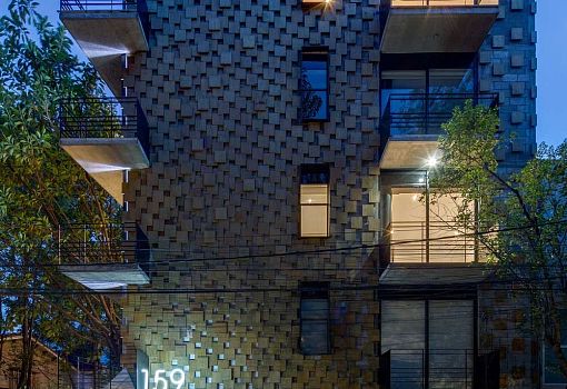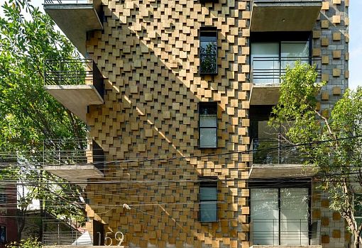Бюро Arqmov Workshop построило многоквартирный дом в Мехико (Мексика). Сооружение стало в некотором смысле связующим элементом двух улиц, одна из которых является транспортной артерией, а другая фоном для ночной жизни города. Этот аспект отражен в форме фасадов, которые различаются. Часть, выходящая на оживленную улицу, выполнена из множества деревянных элементов, которые не только создают оригинальный образ, но и положительно влияют на микроклимат интерьера.