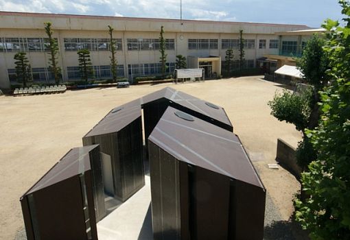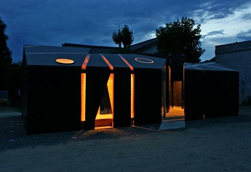 Общественный туалет от Future-scape Architects расположен на острове Ибукидзима (Япония). В композиционном смысле он представляет собой несколько объемов, сгруппированных вокруг небольшого пространства. Создается впечатление, что один большой объемный элемент разрезали на несколько частей. Сходство усиливается благодаря вертикальным узким вставкам из стекла. В ночное время они напоминают ровные разрезы. Фасады сооружения из металла обшиты гидроизолирующим полимером.