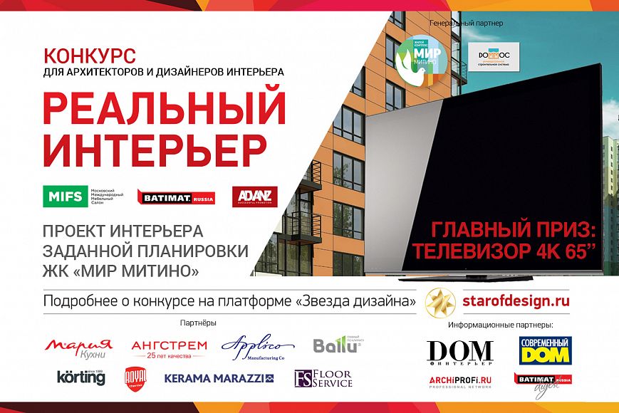 Агентство PR и маркетинговых коммуникаций ADVANZ, выставки MIFS и BATIMAT объявили о начале конкурса «Реальный интерьер» на интернет-платформе «Звезда Дизайна». Задача участников – разработать дизайн интерьера квартиры, которая находится в реально существующем жилом комплексе «Мир Митино», в соответствии с определенными требованиями и из фиксированного набора предметов и материалов.
