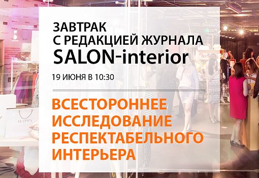 Темой традиционной утренней встречи станет всестороннее исследование респектабельного интерьера. Архитектор Ольга Ступенко раскроет секреты приемов декорирования, а также расскажет о предубеждениях, связанных с этим стилем. Вести мероприятие будет главный редактор журнала SALON-interior Ольга Короткова.