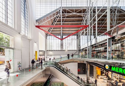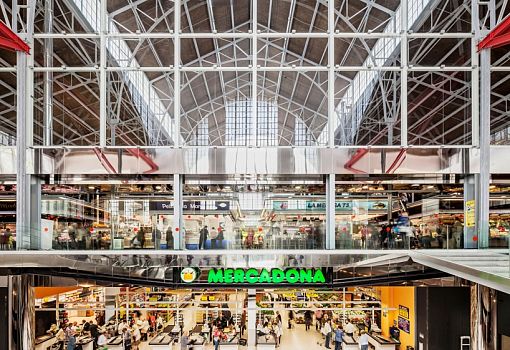 Недавно студия Мateo arquitectura завершила реконструкцию известного открытого рынка в Барселоне Эль-Нинот, который является важным узлом городской инфраструктуры. В самом начале проектирования было решено сохранить характерную металлическую структуру здания рынка, максимально использовать естественную вентиляцию и освещение. В результате появились динамичные фасады и навес, которые превосходно пропускают естественный свет, но ограничивают потенциально вредное солнечное излучение. Это достигается с помощью системы перфорированных ламелей, регулирующих проникновение света. Кроме того, в боковые фасады встроены открытые киоски. В соответствии с требованиями наших дней у рынка появились два подземных этажа с автостоянкой, супермаркетом, погрузочными площадками и складами.