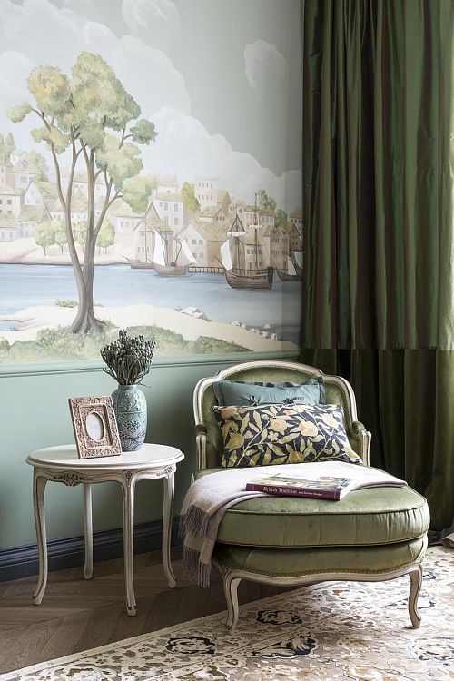 Нечего и говорить, что с таким подходом бюджет все чаще стал напоминать о себе, и после выбора китайского (но заказанного в Великобритании) шелкового панно с ручной вышивкой и росписью, он просто закончился.И вот тут на выручку пришли московские художники, а также краски всемирно известного производителя. Художник Вадим Кадыркаев с легкостью воспроизвел все мои пожелания и создал настоящий голландский пейзаж в спальне родителей, а художник Лиза Смирнова наполнила детскую комнату неуловимым восточным колоритом.