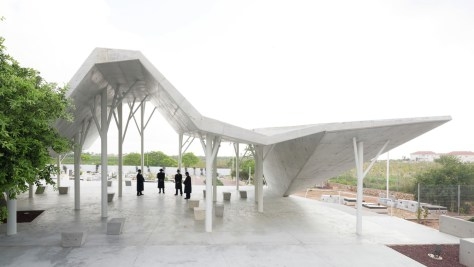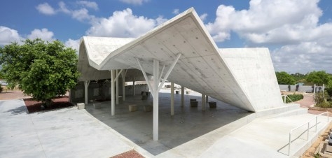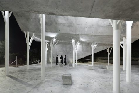 В Израиле архитекторы Ron Shenkin Studio реализовали проект павильона с религиозным значением – он предназначен для прощания с умершими. Серые тона передают скорбную атмосферу, а металлические опоры в виде деревьев и бетонная многогранная поверхность кровли – иллюстрация к наступлению технического прогресса. Более 300 элементов конструкции были выполнены в виде модулей, которые монтировались на месте. Общая площадь сооружения – более 1000 кв.м.