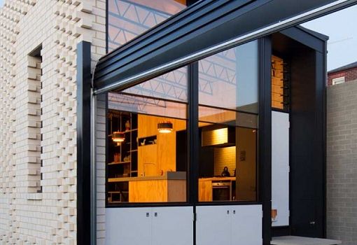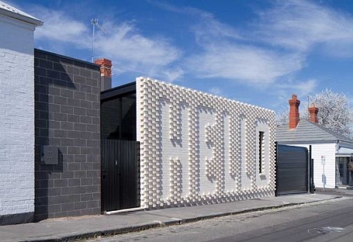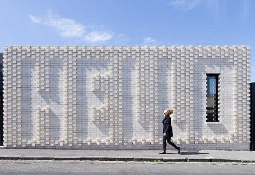 В пригороде Мельбурна (Австралия) расположен уютный домик с примечательным фасадом. На фоне окружающих построек сооружение выделяется надписью HELLO, которая будто выдавлена на белом кирпиче (рельефная кладка). Работу по созданию жилища проводили бюро OOF! и художница Роза Нолан.