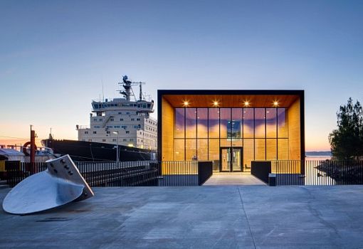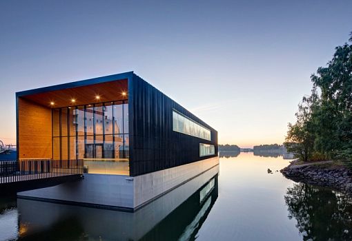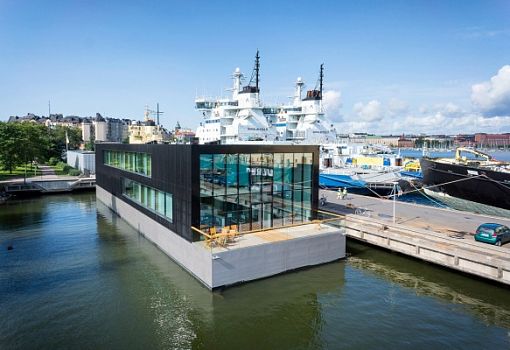 Около пирса Мерикасарми (Хельсинки, Финляндия), прямо на воде находится плавучий головной офис одной финской компании. Минималистское сооружение было построено архитекторами K2S Architects в другом месте и отбуксировано в конечную точку, район Катаянокка. Фасад прямоугольного объема обшит металлом, из окон открываются виды на причалившие по другую сторону пирса могучие ледоколы. В интерьере царит теплая атмосфера благодаря отделке из лакированной древесины.