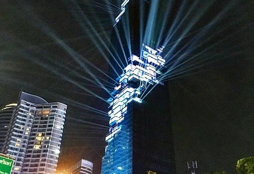В честь открытия самого высокого небоскреба Таиланда было организовано световое шоу. Объект MahaNakhon (проект бюро Büro Ole Scheeren) высотой 314 метров (77 этажей) содержит жилые и коммерческие пространства, а так же социальные зоны. «Пикселизованный» фасад спиралевидной формы создает заметный городской ориентир. Стоит отметить, что господство объекта в плане высотности не продлится долго, ведь на 2019 год запланировано строительство башни в 615 метров высотой.