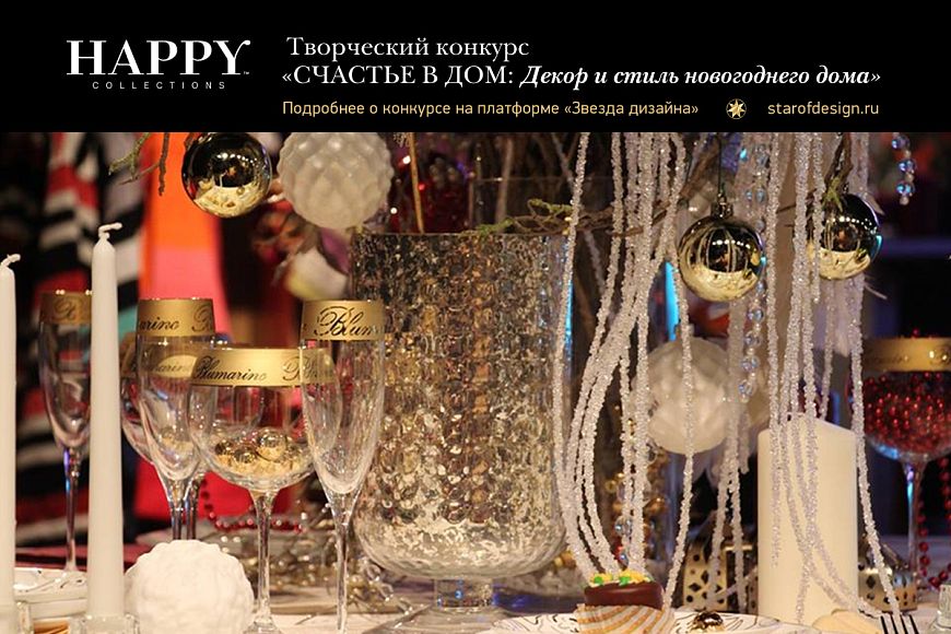 Компания HAPPY COLLECTIONS объявила о старте нового всероссийского конкурса «Счастье в дом: декор и стиль новогоднего дома», который будет проводиться на конкурсной платформе www.starofdesign.ru с 1 декабря 2016 года по 8 января 2017 года.