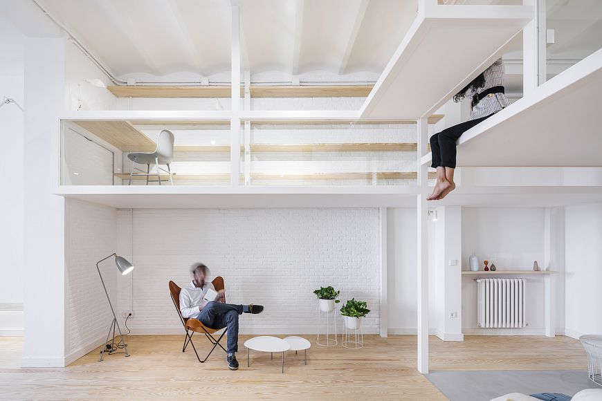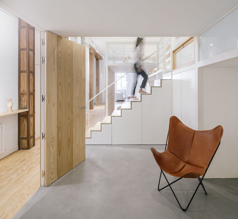 Архитекторы Zooco Estudio возвели «дом в доме» на площади 140 кв. м лофта с высокими потолками в Мадриде (Испания).