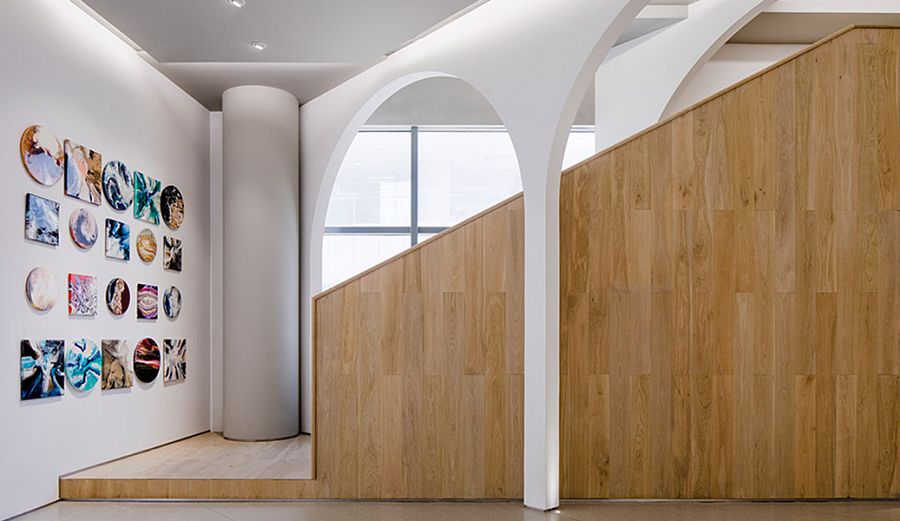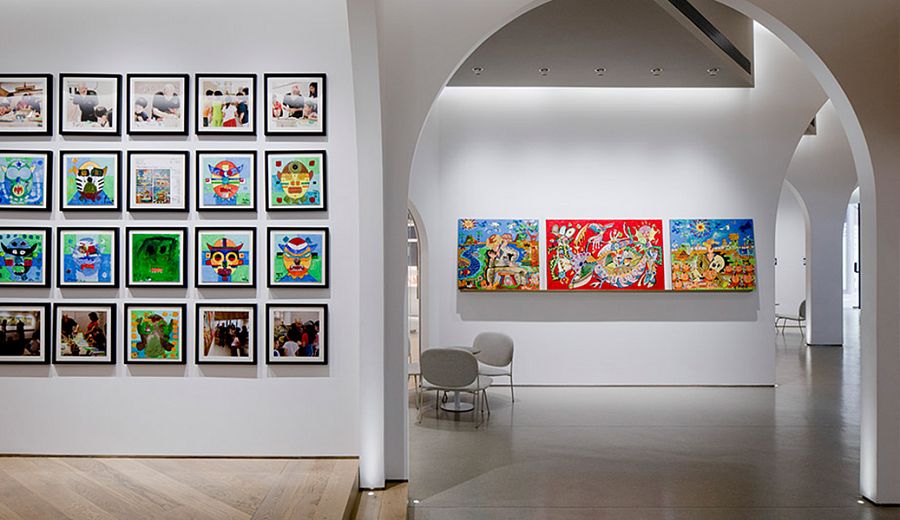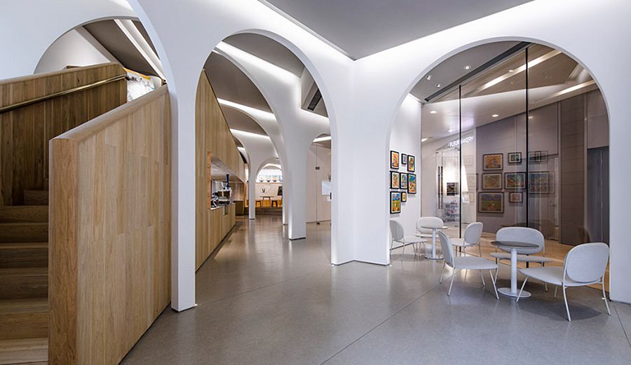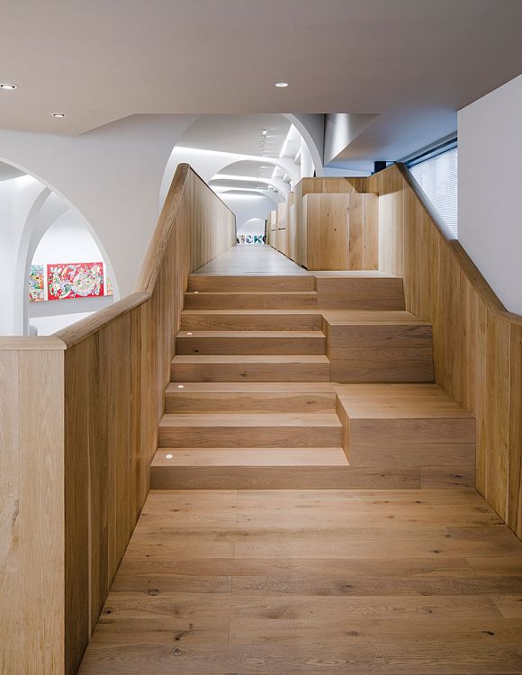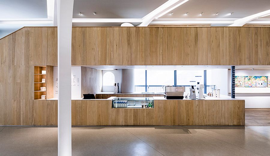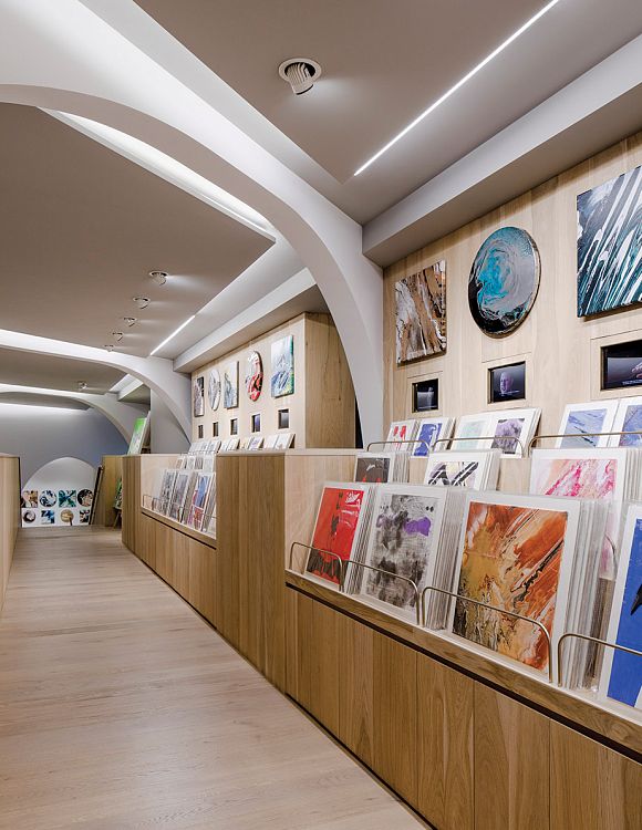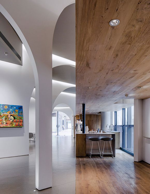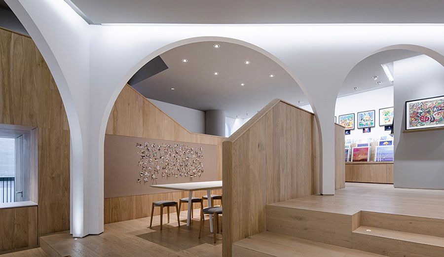 Сами авторы называют это пространство экспериментальным. Очевидно, потому что здесь под одной крышей сгруппированы образовательные, культурные и коммерческие функции. Общая площадь помещения – 260 кв.м, интерьер разделен на два этажа.  Набор помещений довольно предсказуемый: экспозиционные залы, учебная студия, две мастерских, кафе, лаунж, многоцелевая аудитория и склад. Главным архитектурным элементом внутреннего пространства стала арка. Аркады устроены так, чтобы сквозь них галерея просматривалась в разных направлениях. Интерьер наполнен встроенными деревянными конструкциями, а второй этаж целиком отделан деревом. «Мы обеспечили естественное движение посетителей по галерее. Несмотря на небольшой метраж, в пространстве царит атмосфера свободы и непринужденности», - говорят архитекторы о своей работе.
