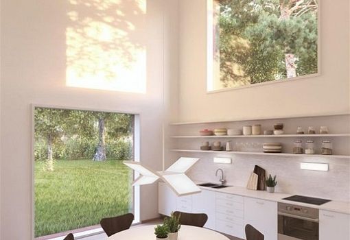 Статистический эксперимент был проведен одним шведским интернет-ресурсом при участии двухмиллионной аудитории. Граждане страны охарактеризовали основные особенности современного дома, после чего архитекторы Tham & Videgård воплотили проект в жизнь. За основу был взят объем в полтора этажа площадью 120 кв.м. с тремя спальнями и открытой кухней. Минималистское сооружение из дерева, окрашенного в красный цвет, отличается открытостью пространств и легкостью интерьерных композиций. Эксперимент на сайте-организаторе продолжается.