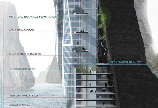 Концепцию возведения небоскребов в известняковых скалах предложил группа малазийских архитекторов. Они выступают за сохранность девственных карстовых скал во Вьетнаме и Китае, и разработали новый принцип добычи известняка без ущерба для этих необыкновенных творений природы. Основная идея дизайнеров - добывать породу в скалах таким образом, чтобы впоследствии в сформировавшиеся полости можно было встроить небоскребы. Это позволит сохранить памятники природы от уничтожения, создавая уникальные парки небоскребов в окружении красивейших скал. По замыслу архитекторов, со стороны, где осуществлялась добыча известняка, необходимо укрепить скалу стальными рамами, которые впоследствии могут быть отделаны стеклом и стать фасадами.