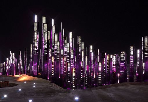 Очередная работа бюро Penda находится в Пекине (Китай) и завершает оформление входа в так называемый «Сад миртовых деревьев». Символически «частокол» из 800 перфорированных структур разной высоты изображает динамику звуковой волны. Интерактивная инсталляция задает музыкальный и световой ритм города, акцентируя внимание на одном из культурных центров столицы.