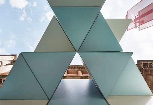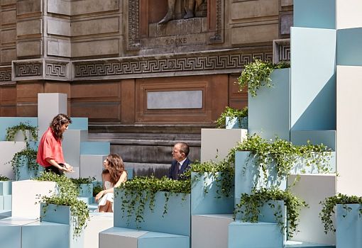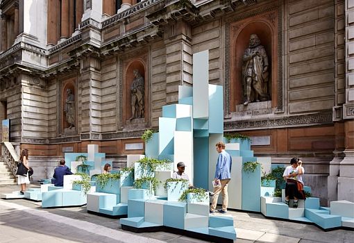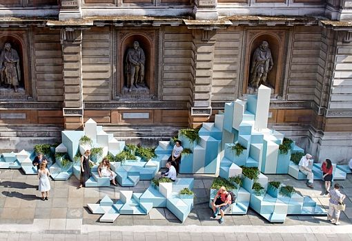 Неожиданная композиция этим летом возникла прямо перед входом в Лондонскую королевскую академию искусств. Она создана студией SO? Architecture and Ideas и предлагает переосмыслить традиционное использование керамической плитки в архитектуре. Обычно керамика используется как декоративный элемент, причем это 2D-материал. Но в этой инсталляции она образует 3D-композицию, предназначенную для отдыха, исследования и общения. Керамический холм, выполненный из белых и голубых треугольных призм различной длины, позволяет посетителям экспериментировать с керамикой, карабкаться по «горе», а также любоваться на зеленые насаждения, растущие в некоторых призмах.