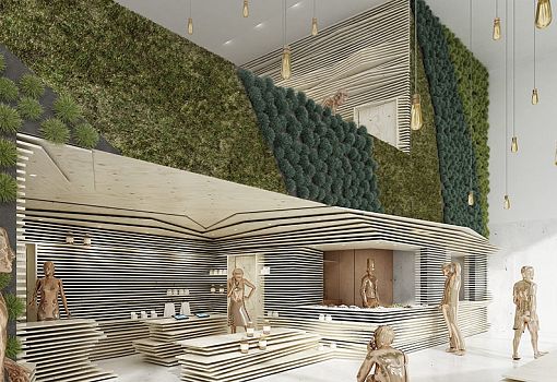 Архитектурная студия Sono Arhitekti из Словении поделилась с архитектурным сообществом своими планами создания словенского павильона для ежегодной выставки в Милане. Структура объединит пять перетекающих друг в друга призм, отделанных деревом. Установлены они на площадке, символизирующей обрабатываемые земли Словении. Выставочная площадь составляет около 582 кв. м. Деревянная отделка павильона напоминает об одном из ее самых главных природных ресурсов - густых лесах, определяющих ландшафт Словении.