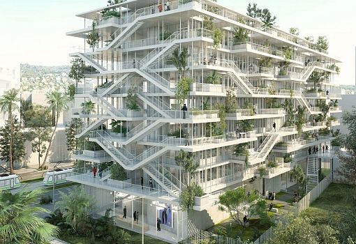 Недавно проведенный конкурс на проектирование бизнес-центра в Ницце выиграло агентство NL*A Paris. Проект-победитель представляет открытые пространства, объединенные в многоэтажную структуру с многочисленными террасами. Будущее сооружение площадью 6400 кв.м. фактически лишено внешних стен, зато буквально утопает в зелени и солнечном свете. Для эффективного взаимодействия с окружающей средой и регулирования климата фасады несколько отличаются друг от друга, например, южный имеет более узкие террасы, чтобы интерьер не перегревался.