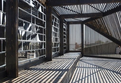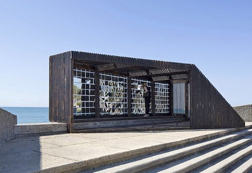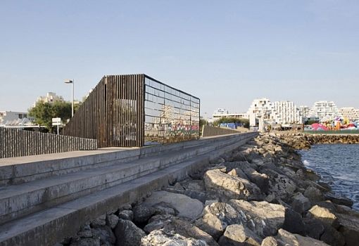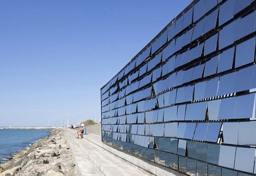 Архитекторы из бюро NAS architecture построили в местечке Ля-Гран-Мотт (Франция) одно необычное сооружение – минималистский павильон площадью 20 кв.м. Фасад его составлен из зеркальных элементов. Это позволяет морю как бы выплеснуться на стены сооружения и создать волнующий образ, благодаря тому, что зеркала движутся от ветра.
