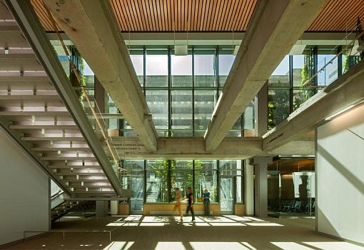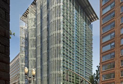 Реконструкцию здания EGWW (Портленд, США) провели архитекторы бюро SERA Architects и Cutler Anderson Architects. Строение площадью 47610 кв. м отличалось высоким уровнем энергопотребления - 1,7кВт/м2. В рамках проекта были видоизменены фасады, вместо бетонных конструкций появились алюминиевые экраны с большой площадью остекления, обеспечивающие инсоляцию и естественный обогрев пространств. Для сбора дождевой воды используется интегрированный бак на 600 литров. В результате модификаций удалось снизить энергопотребление на 50%, а потребление воды - на 65%. Здание удостоено «платины» по системе LEED.