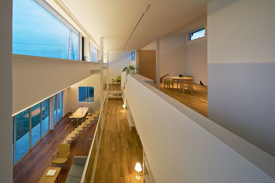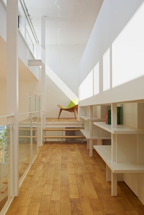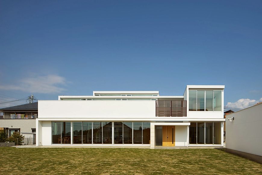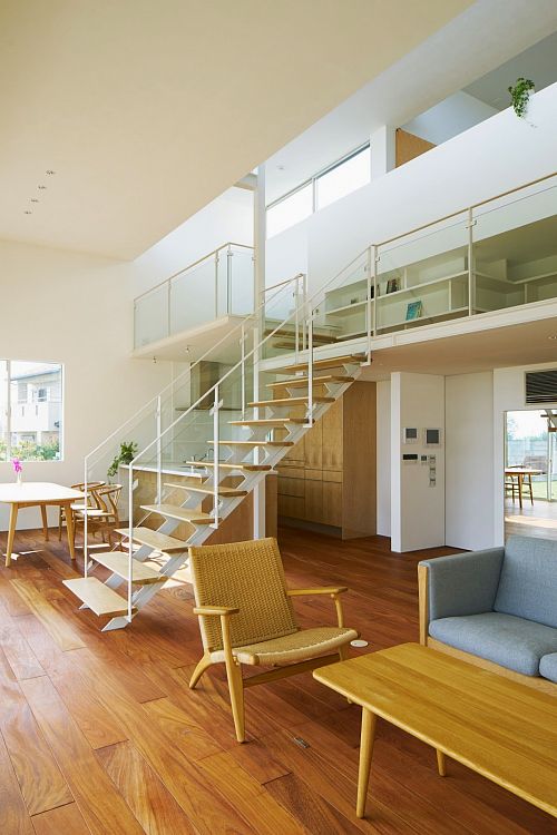 В японском городе Каи архитектурная фирма Mamm Design построила дом для семьи, напоминающий террасу. Из-за суровых климатических условий, основным требованием заказчика стало расположение окон на южном фасаде.