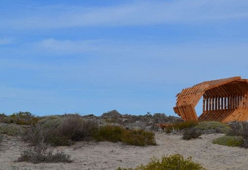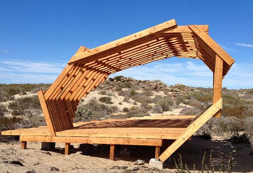 В Мексике архитекторы Escala Arquitectura создали два минималистских общественных пространства (назовем их условно современными бельведерами). Захватывающие пейзажи, ставшие преимуществом проекта, выглядят весьма выразительно. Объект La Ola выполнен в виде деревянной «скелетной» скульптуры, предназначенной для отдыха. «Восемью потухшими вулканами» (так указано в описании проекта) окружен еще один объект, Valle volcanico. Оформлено сооружение в виде концентрических окружностей, сделанных из местных трехцветных камней. Оба объекта интегрированы в среду так, чтобы не акцентировать на себе внимание.