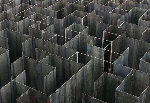 Архитекторы бюро Gijs Van Vaerenbergh создали в культурном центре бельгийского города Гента инсталляцию под названием «Лабиринт вмешательства». Этот ландшафтный объект основывается на базовых архитектурных структурах: городские ворота, мост, стены и купола. «Вековая» форма лабиринта здесь исследуется, как пространственный опыт в уникальной композиции стен и пустот. Геометрические изгибы лабиринта позволяют видеть то, что находится по другую сторону стен, поэтому перемещаться в нем довольно легко. Высокие стальные стены лабиринта обращают внимание посетителей на заброшенные старые шахты, на территории которых находится культурный центр.