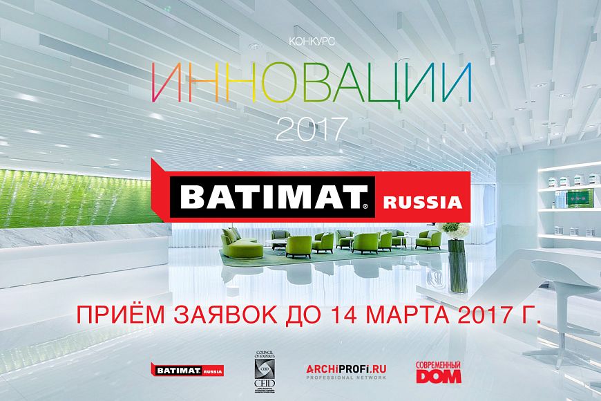 АНО «Совет экспертов интерьерного дизайна» и Международная строительно-интерьерная выставка BATIMAT RUSSIA объявили о начале приёма работ на конкурс «Инновации-2017», итоги которого будут подведены на экспозиции с 28 марта по 31 марта 2017 года в МВЦ «Крокус Экспо».