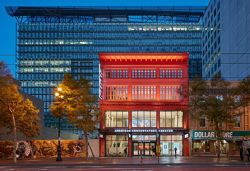 Сто лет тому назад Маркет-стрит в Сан-Франциско была оживленной улицей с множеством магазинов и культурных мест, в том числе, театром The Strand. За прошедшие десятилетия улица потеряла свою привлекательность: магазины закрывались, старый кинотеатр пришел в негодность. Однако в прошлом году студия SOM превратила это заброшенное здание в театр для одного из театральных обществ США. Внутри обновленной постройки нашлось место для двух концертных площадок, образовательного центра, репетиционного зала, общественного лобби и кафе. С тех пор Маркет-стрит обрела новую жизнь. Превращение дома кино 1917 года в оживленное место было сопряжено с решением массы самых жестких вопросов, в частности, такого: «Как обустроить 285-местный театр в длинном и узком пространстве?». Добавив современное оборудование и высокую сцену, SOM разместил зрителей и исполнителей максимально близко друг к другу.