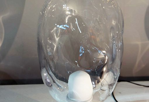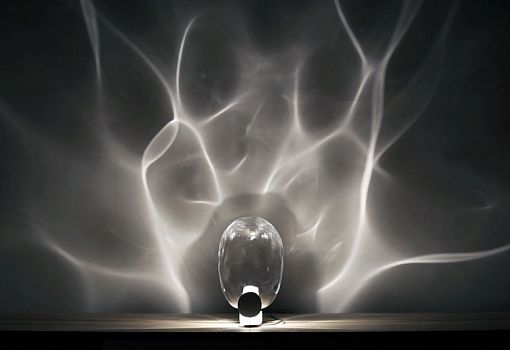 Объект Ripple («Рябь») можно назвать светильником только с большой долей условности. Взять хотя бы тот факт, что источник света находится вне диффузора! Да и основная его функция – не освещение как таковое, а создание эстетичной и эмоционально комфортной атмосферы. Ripple состоит из галогенной лампы, стеклянного «купола» (рассеивателя яйцевидной формы) и мотора, который медленно вращает купол вокруг оси. Купол выполнен вручную из выдувного стекла, и его оболочка имеет неравномерную толщину, вмятины и прочие умышленные «изъяны» - проходящий через них поток света образует на заднем плане красивую светотень. А поскольку диффузор плавно вращается, рисунок светотени находится в постоянном движении.  В своем проекте дизайнеры пытались воссоздать порождаемую волнистой водной поверхностью игру света, которую можно наблюдать сквозь толщу воды на морском дне или в отсветах на потолке бассейна. И им это блестяще удалось! Отметим, что работа Ханши Ченя и ШиКай Цзэна (запомните эти имена) уже завоевала престижный приз журнала Design Report, а также награду выставки Salone Satellite.