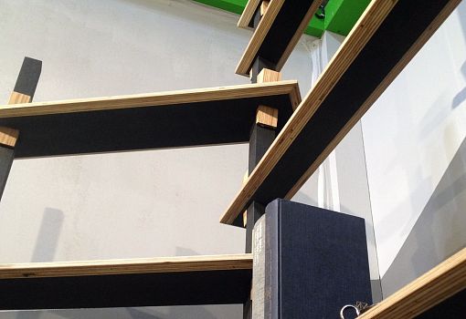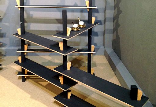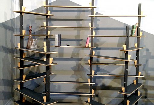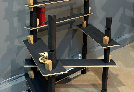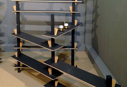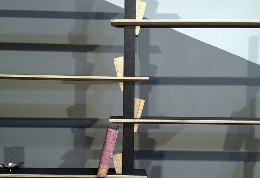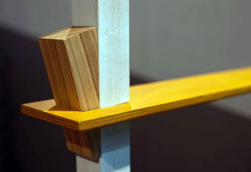 Спроектированный студией стеллаж Buds целиком и полностью сделан из древесины: березовой фанеры и массива ясеня, без применения какого-либо металлического крепежа. Для соединения частей архитекторы применили старинный способ крепления «паз-выступ», позаимствованный из традиционного деревянного японского зодчества: полки «нанизываются» на опоры и фиксируются при помощи клиновидных деревянных брусков.