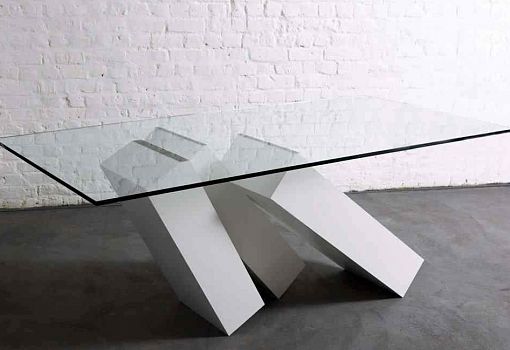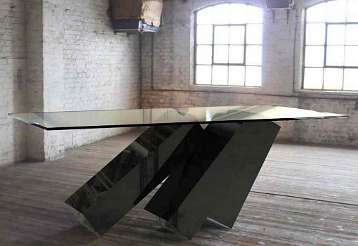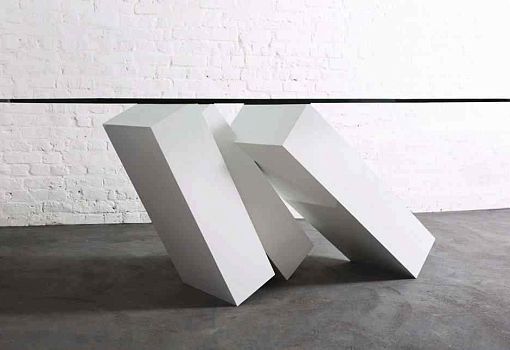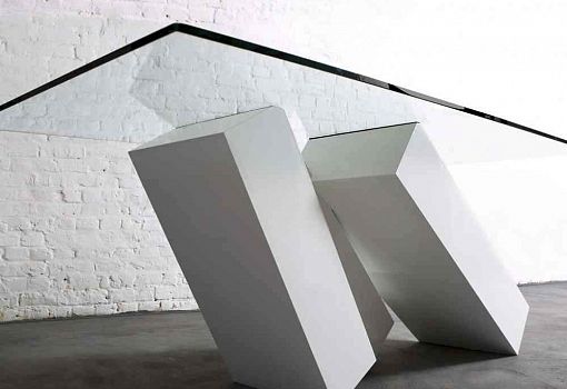 Стол Monolith с «падающим» основанием – отсылка к черным монолитам «Часового» Артура Кларка и «Космической одиссеи» Стенли Кубрика. Столешница – закаленное стекло, подстолье – сталь. Производится ограниченной серией в 25 экземпляров, стальное основание может быть черным, белым или зеркально-отполированным.