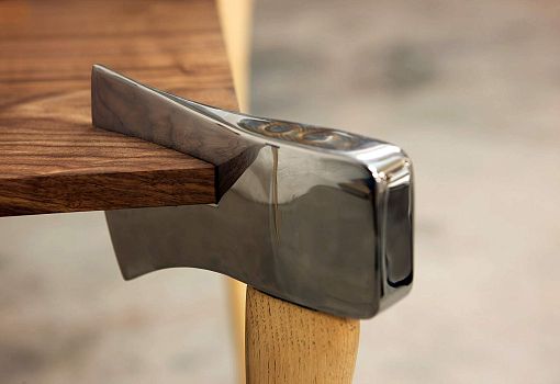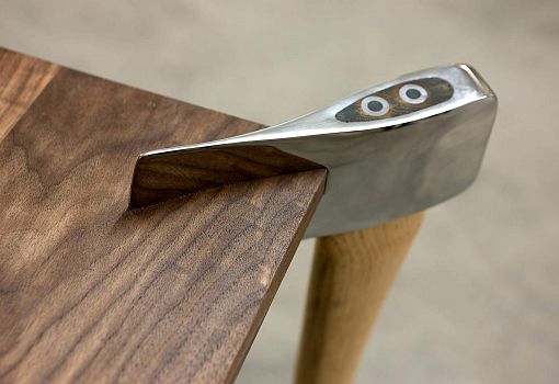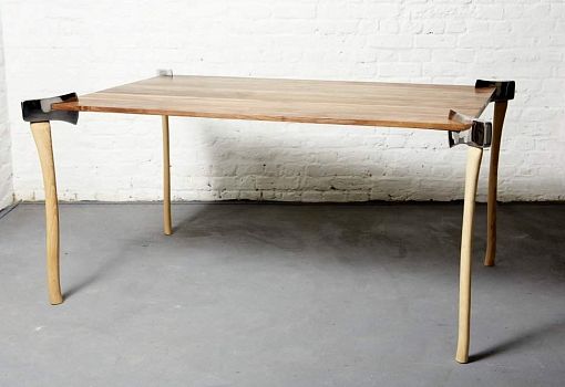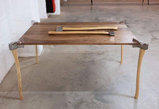 Обеденный стол Woodsman Axe («Топор дровосека») создан по мотивам сказки «Красная шапочка» в брутальной версии братьев Гримм. Столешница выполнена из массива ореха, дуба или ясеня, ножки стола – отполированные до зеркального блеска американские топоры серийного производства. Модель была спроектирована для тематической выставки.
