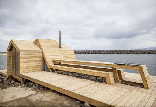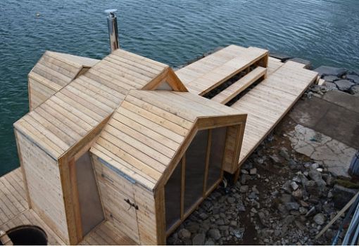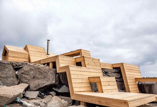 Дизайнеры-студенты Oslo School of Architecture and Design закончили работу над проектом Scarcity and Creativity Studio. В рамках проекта по возрождению общественных и культурных сооружений на побережье с видом на норвежские горы появился небольшой комплекс-сауна из лиственницы. Самой интересной частью композиции The Bands являются три дорожки к зданию, выполненные в виде многоуровневых ступенчатых лент.