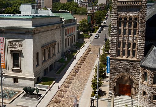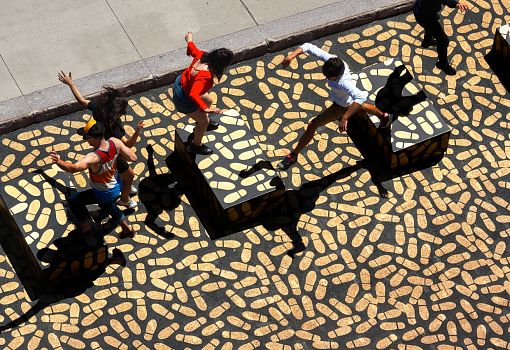 Архитектор Жан Вервиль преобразил участок улицы возле Музея современных искусств в Монреале (Канада) в интерактивное пространство. Аттрактивный проект «Танцпол» (DANCE FLOOR) – это 5000 золотых следов, хаотично расположенных на земле и нескольких выступах. Площадь пространства – 278,7кв.м.