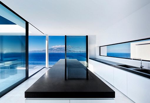 Минималистская концепция, предполагающая сочетание белоснежных прямоугольных объемов, положена в основу проекта House T бюро Olivier Dwek Architectures. По словам архитекторов, дом выглядит очень театрально, причем во многом благодаря ориентации на красивый вид морского побережья. Находится сооружение в Греции.