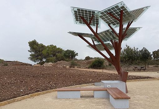 В одном из израильских парков установили «технодерево», созданное в рамках проекта eTree. Концепт был разработан бюро Sologic за 18 месяцев. «Дерево», созданное из металла, стекла и солнечных панелей, способно вырабатывать 1,4 кВт в час, дает возможность утолить жажду, подзарядить телефон, отдохнуть в тени днем и при свете ламп ночью.