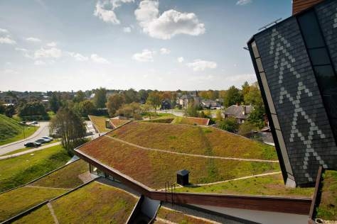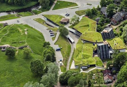 Архитекторы SAALS Architecture создали удачный проект Центра творчества в латвийском Резекне. Он напоминает тектоническую структуру, появившуюся на поверхности земли в результате извержения вулкана. Сходство усиливает тот факт, что здание с озелененными кровлями неразрывно связано с террасированным ландшафтом. И даже деконструктивистские наклонные башенки похожи на суровые мегалиты, торчащие из земли уже многие сотни лет.