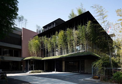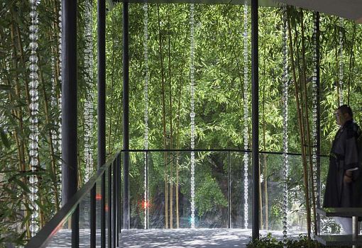 Современный храм Ekoin Nenbutsudo стал очередным реализованным проектом студии Yutaka Kawahara Design Studio. Буддистский комплекс в минималистском стиле символизирует так называемый Gokuraku – «Рай на небе». Здание визуально и функционально разделено на три элемента: монастырь, пагоду и священное пространство. Самой занятной архитектурной особенностью постройки стал бамбуковый сад, устроенный на террасах второго этажа. Сад создает барьер между пространством храма и городской суетой.