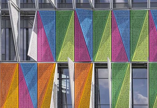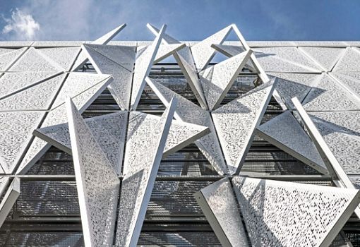 Сооружение архитекторов из бюро Henning Larsen Architects этого года стало первым в Дании (Колдинг) зданием, отражающим новейшие требования страны к энергосбережению. Корпус университета Зюдданск общей площадью 13 700 кв.м. в числе прочего оснастили динамичным фасадом, состоящим из 1600 перфорированных металлических пластин. Каждый элемент подвижен и позволяет регулировать интенсивность естественного освещения в интерьере в течение суток.