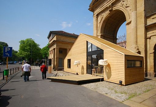 Совместный проект архитекторов Тома Кокинса и Мартина Хермансонса получил название Esclice Mobile Home. Сооружение является полностью транспортабельным и предлагает динамичное и гибкое пространство для жизни. Для демонстрации проекта были выбраны городские пространства, которые в полной мере позволяют раскрыть потенциал дома.