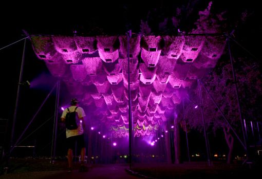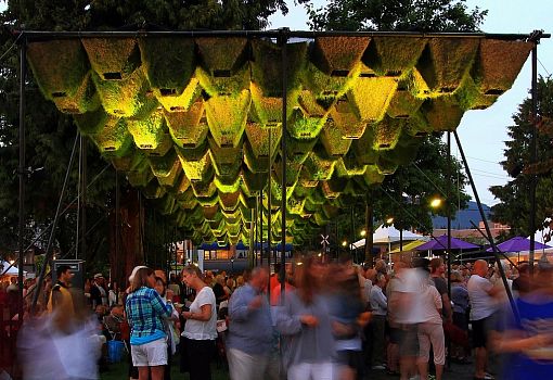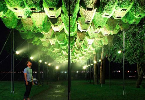260 модулей стали основой инсталляции от архитекторов Matthew Soules Architecture в Ванкувере (Канада). Основы в виде перевернутых пирамид засажены клевером и многолетней травой. Причем в темное время суток сооружение Vermilion Sands источает свет, благодаря интегрированным светодиодам. Так дизайнеры подчеркнули сочетание живой природы и современных технологий.